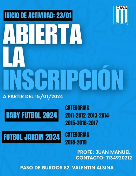 Si queres más información Presiona el Botón y seguí el Baby futbol del Cava en Instagram, Muchas Gracias!